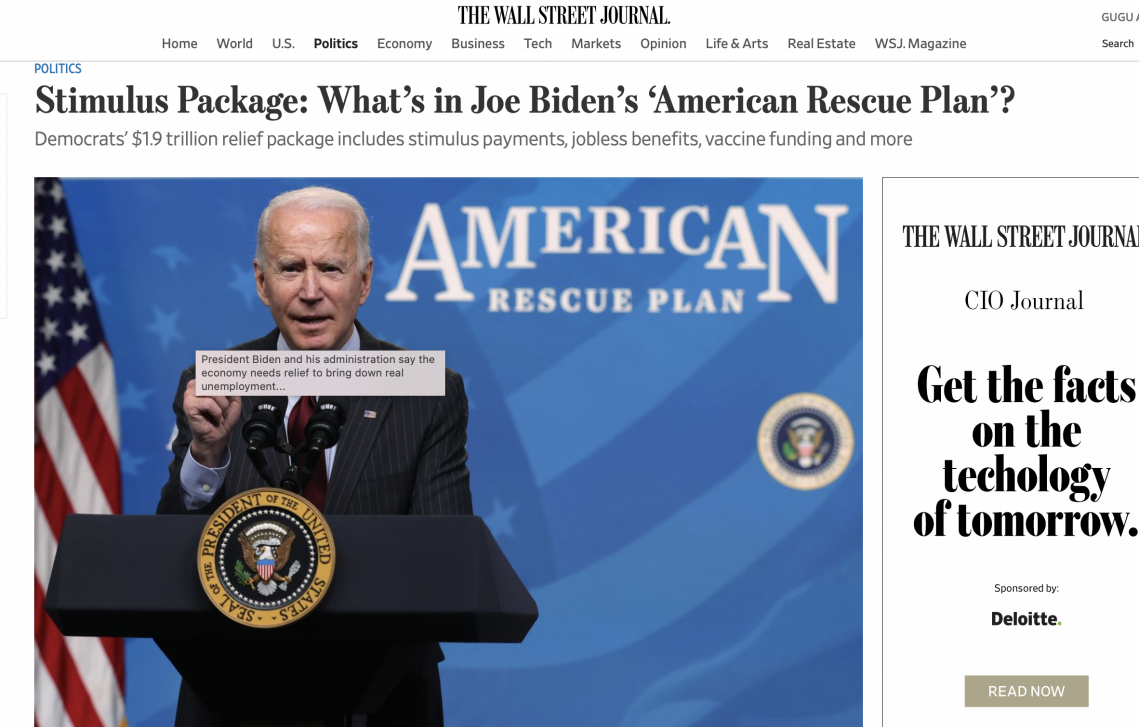 △《华尔街日报》称,在拜登的纾困计划中,多项条款都面临着共和党人的质疑