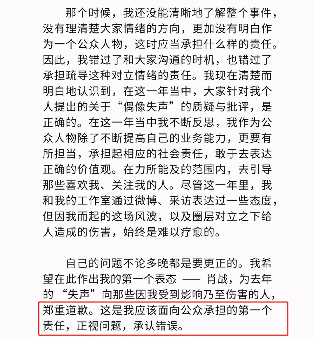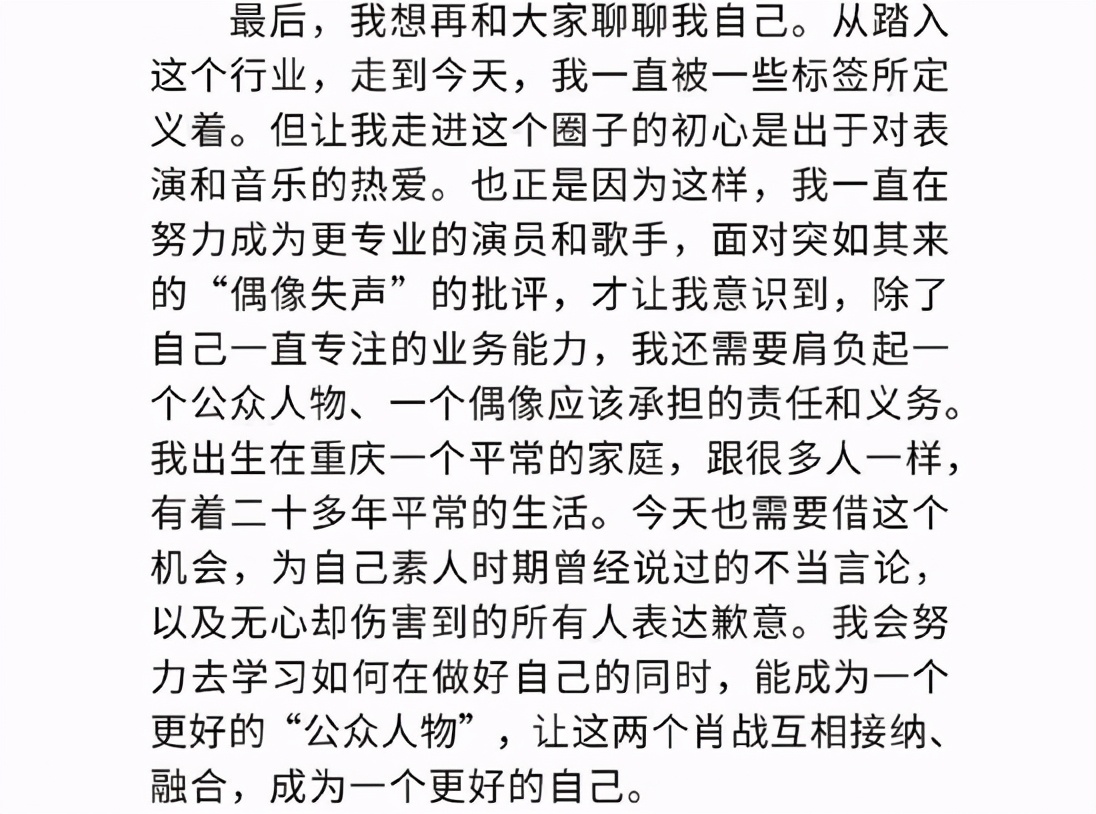 因为粉丝的错误做法,导致很多人遭受到了二次伤害,所以肖战才会特意地为这些受到了影响的读者网友们而道歉,那么在他长文中要道歉的第二个点呢,则是为素人时期的不当言论而道歉。