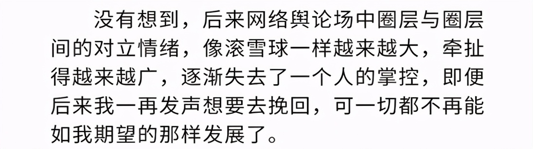 在事件的后续发展超出控制之时,他也错过了发声的最佳时机,从而变成了大众眼中的“失声偶像”,如今选择站出来,正是因为他已经认识到自己作为一名公众人物所要承担的责任。