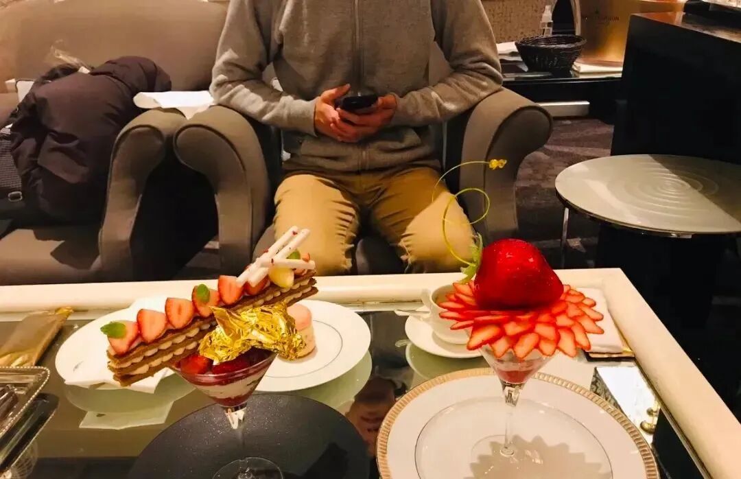 而想要一次吃两份甜品的女孩,怕一个人吃会引起餐厅其他人的侧目,于是雇了小哥坐在对面陪吃。
