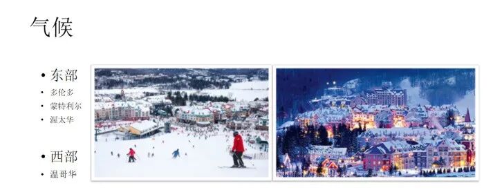 说到气候的话,大家都知道加拿大相对来说是比较寒冷的一个国家。从纬度上讲,蒙特利尔的纬度相当于我们国内的哈尔滨,多伦多的纬度相当于国内的长春,美国纽约的纬度相当于国内的沈阳。