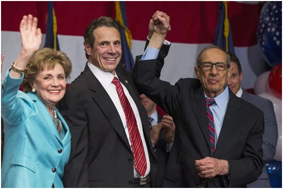 ·科莫(中)连任纽约州州长,父母为他庆祝。