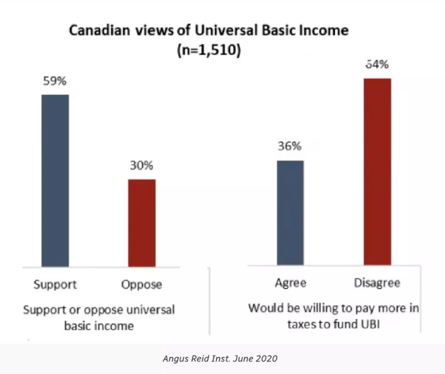 而当时则有一民调显示, 有60%的受访者支持加拿大实行全民基本收入。