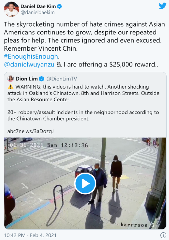尽管这些社会运动正在进行着,针对亚裔和华人的袭击仍在继续——自去年3月以来,美国共报告了3000余起针对亚裔的仇恨犯罪。