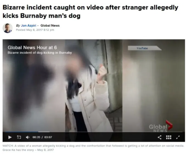 “她在几年前踢了别人的狗!”