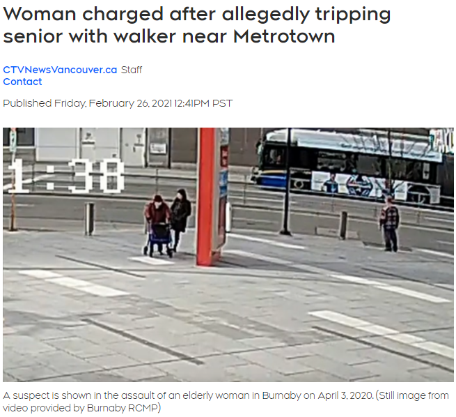 恶意绊倒行走困难的84岁老人,