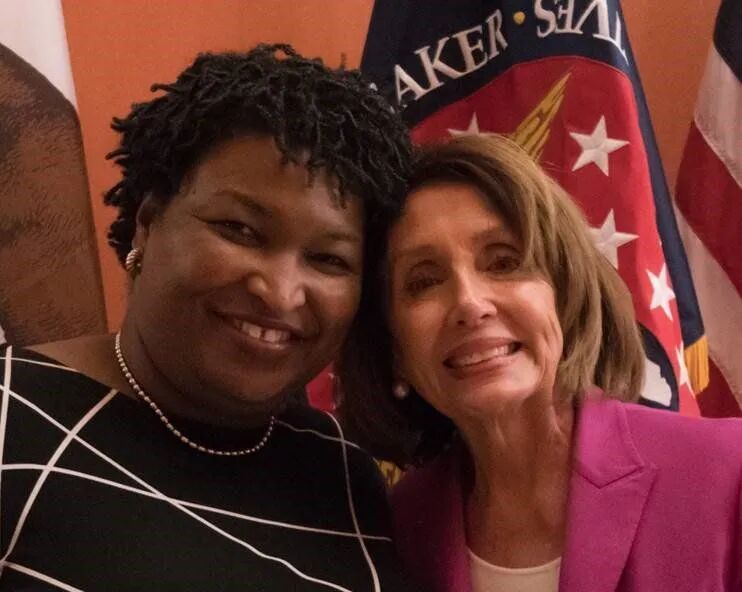 佩洛西和艾布拉姆斯 Office of U.S. House Speaker, Public domain, via Wikimedia Commons