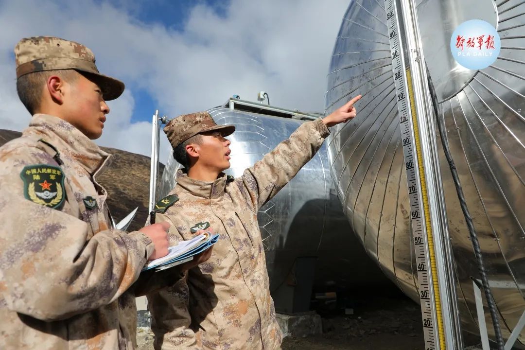 官兵们在观察记录水位