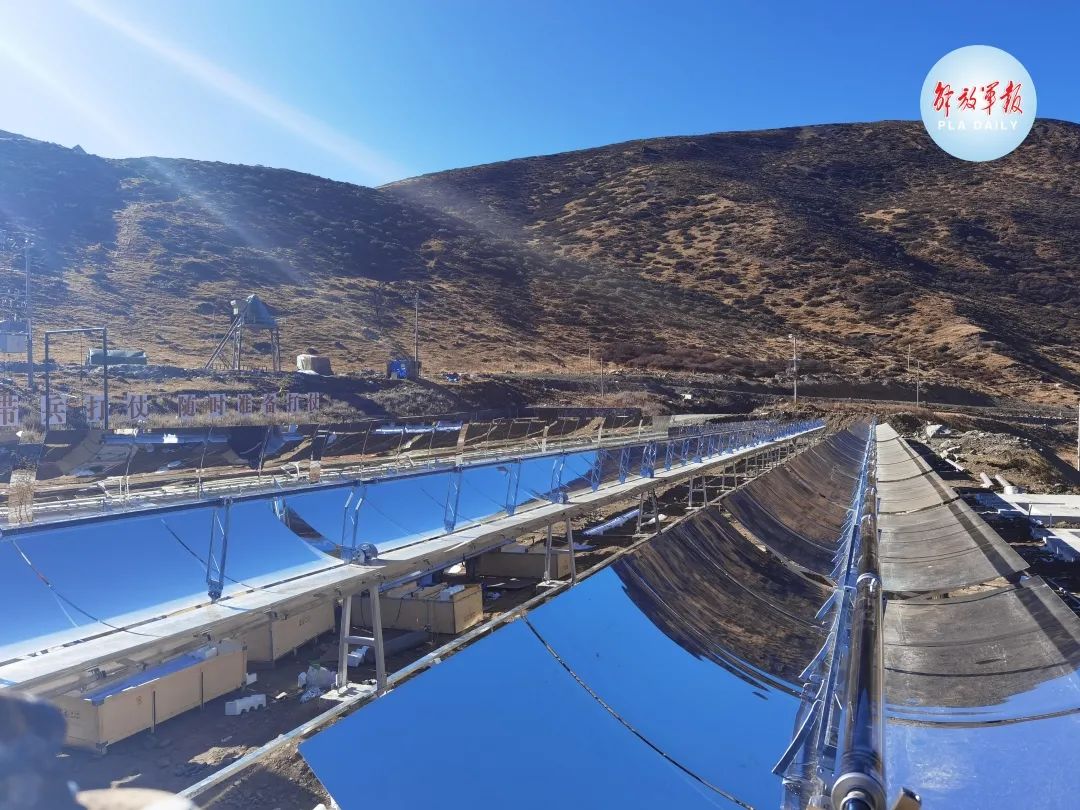 官兵们擦拭保养槽式太阳能供暖系统