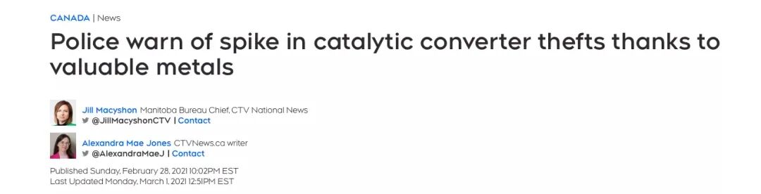 在安省圭尔夫地区,自去年年底以来,已有几十个催化转化器被盗。渥太华警方亦表示,从2021年1月1日开始,该市已经发生了28 起催化转换器盗窃案,31辆车受到影响。