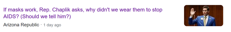 有当地媒体报道提到,在查普利克的推动之下,亚利桑那州众议院以31票赞成对28票反对通过了法案,企业主无需强制执行任何州、市、或县佩戴口罩的要求。