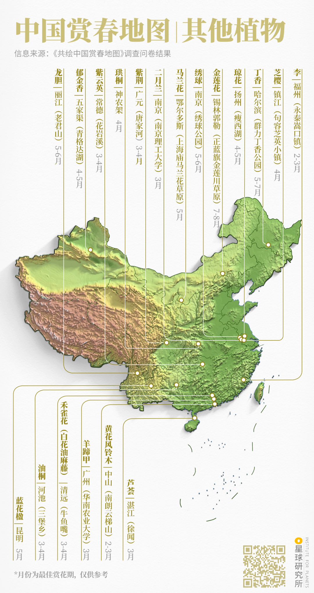 (中国赏春地图⎜其他植物,制图@郑艺&郑伯容/星球研究所)