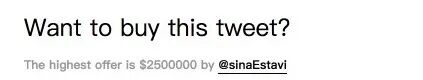 据外媒报道,目前,这则推文已被竞价到250万美元(1624万人民币)!