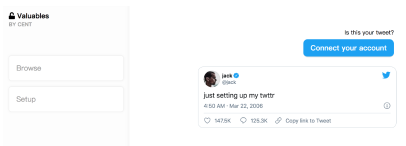 现在,这则推文正在一个名为Valuables的平台竞拍呢: