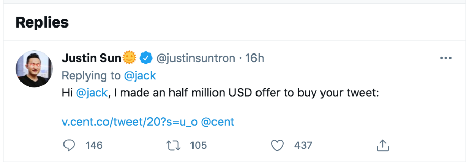 简而言之,最终成功买到这则推文的人可以获得推文的所有权,同时也获得了推文的访问权。