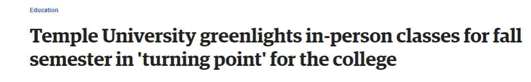 天普大学将在秋季学期为面对面授课开绿灯。