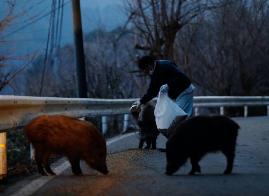 每个月,他花在照顾动物上的费用大概在7000美元,其中一部分用来给每天傍晚聚集在他家附近的野猪买狗粮。农民们都把这些野猪当成祸害,指责它们随意破坏空房子。