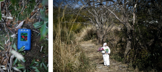 左:Unuma家墓地的辐射剂量计显示读数为每小时1.89微西弗