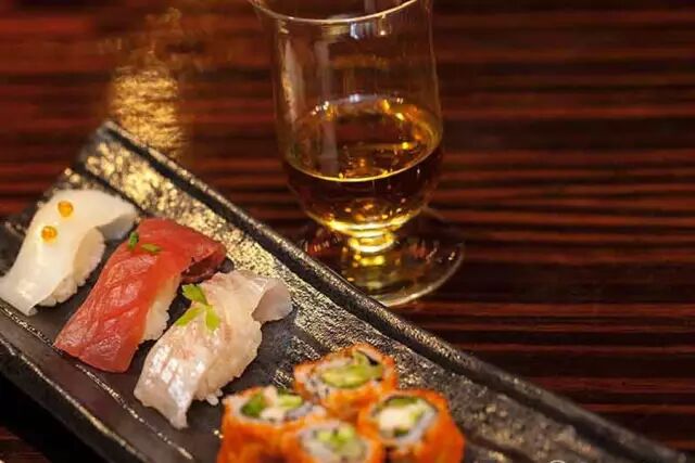 寿司可以和不同类型的威士忌搭配,泰斯卡(Talisker)和阿贝都非常受欢迎,大概和其中咸咸的海水味有关。此外,寿司中芥末酱的辣味和酱油味可以与苏格兰麦芽威士忌搭配起来也是相得益彰。