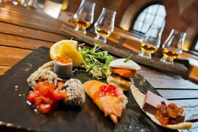 (3)富含脂肪的食物大多能与烈酒搭配,威士忌自然也不例外。因为当你吃完油腻的食物后,再喝一口威士忌,那么当浓郁的酒精液体滑过口腔时,舌头上覆盖的那层厚厚的脂肪会逐渐消失,威士忌的风味也会更完美地呈现出来。