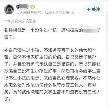 “张桂梅就是个没生过小孩,不知道养育子女的伟大和辛苦,自己断子绝孙,又拼命洗脑女学生的xxx。”