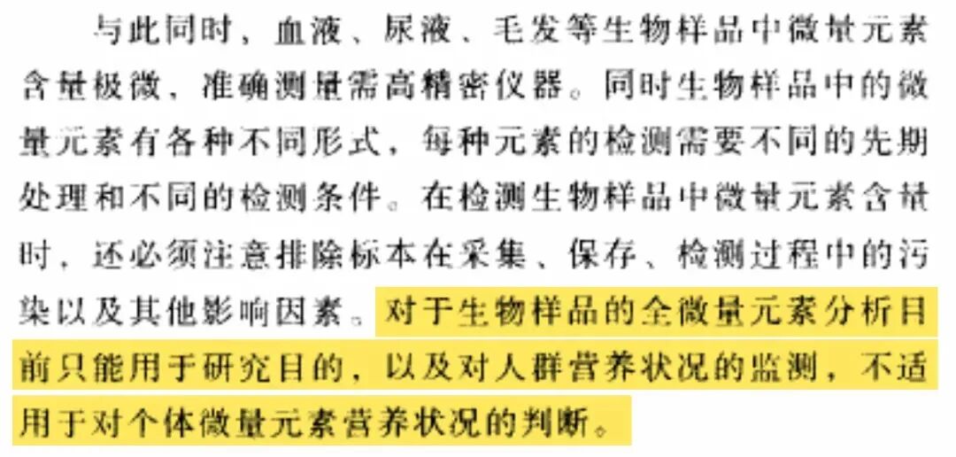 并且,不宜将微量元素检测作为体检等普查项目,尤其是对 6 个月以下婴儿。