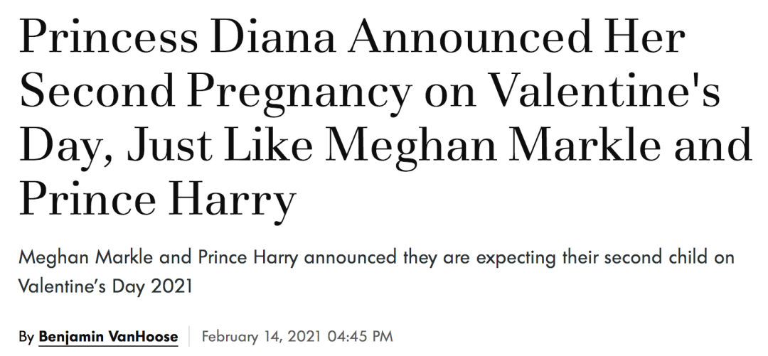 这已经不是梅根第一次致敬戴安娜了,而且,他俩官宣这个二胎的时机也很妙,正好是情人节那天。有媒体发现,当年戴安娜官宣怀上二胎时,也是在情人节那天。