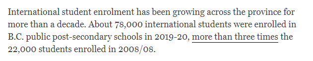 BC省所有高中的学生也要回校上课了,但是问题来了。因为疫情原因,很多留学生回国了,回加拿大成了大问题。目前BC省大学就有7万8千的国际留学生,小留学生就有2万3千人,这加在一起就破10万了。
