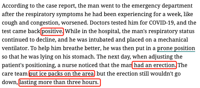 医疗团队认为,出现阴茎充血勃起的情况,极有可能是感染新冠病毒导致的。