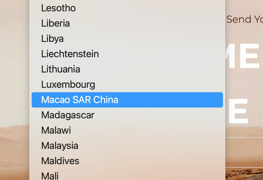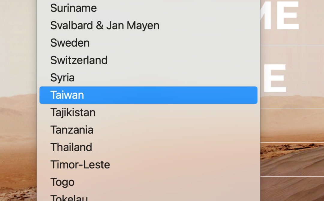 记者查询“国家”一栏,发现“Taiwan”赫然出现在列表中。
