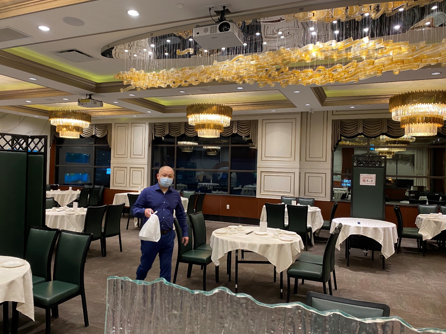 “我听说很多西餐馆的堂食生意都恢复了,但是华人对新冠病毒非常谨慎,所以至今没什么人愿意出门聚餐。”鸿毛海鲜酒楼的老板Helen Huang在接受采访时正是晚餐时段,但是她的餐厅空空荡荡,只有角落里有一桌客人。
