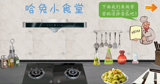 哈兔中文采用1对1/1对2/1对3/1对4的小班课堂,这样老师能充分照顾到每一个孩子。为了增加课堂氛围和趣味性,哈兔教研团队参考了市面上大量的儿童益智类游戏,打造出多种在线互动形式,从眼、耳、口、手多感官调动孩子学习兴趣,让孩子在“互动”中学会听说读写。比如让孩子体验这种动态小厨房,孩子的学习兴趣一下子被调动,在玩中掌握了中文知识。