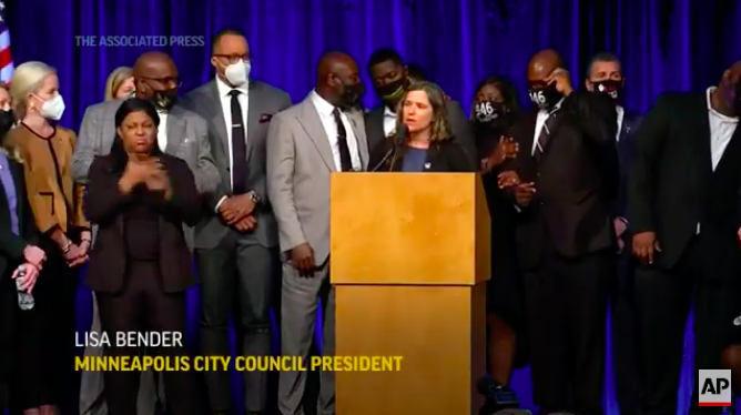 市议会主席丽莎·本德(Lisa Bender)在关于庭外和解的新闻发布会上哽塞说,她知道“再多的钱”也不能让弗洛伊德复活。“我只是想让你们知道,我们与你们同在,”她对弗洛伊德的家人说。