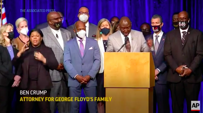 弗洛伊德的家庭律师本·克伦普(Ben Crump)称这是有史以来民事诉讼赔偿数额最大的审前和解,并感谢市领导“表示出对乔治·弗洛伊德的关心”。