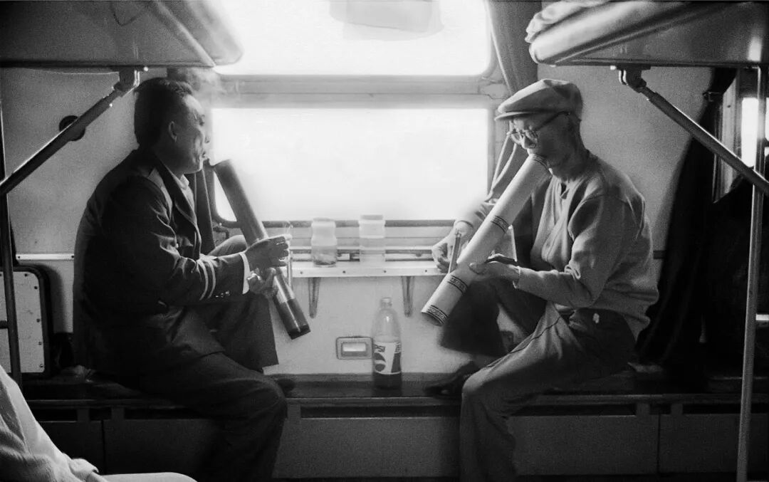 另外一张,是一对情侣躺在硬卧上,用毯子遮着一半的脸。王福春在此前的采访里回忆说,当时的卧铺是不允许坐两个人的,小伙子看到他拿着相机,一下子用毯子把自己和对象蒙了起来,就在众目睽睽之下,“蒙着亲的叭叭直响”,大伙儿哄堂大笑。