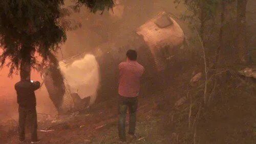 但这其实挺危险的,有些火箭掉下来的时候燃料(四氧化二氮残留)还没燃烧殆尽,产生的黄烟非常刺鼻,隔着200米都能闻到。