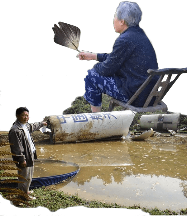 有一次,长征二号捆绑式运载火箭的整流罩掉在某乡村,落区工作组带人去找。工作人员到村头看到一老大娘,就寻思着问一下: