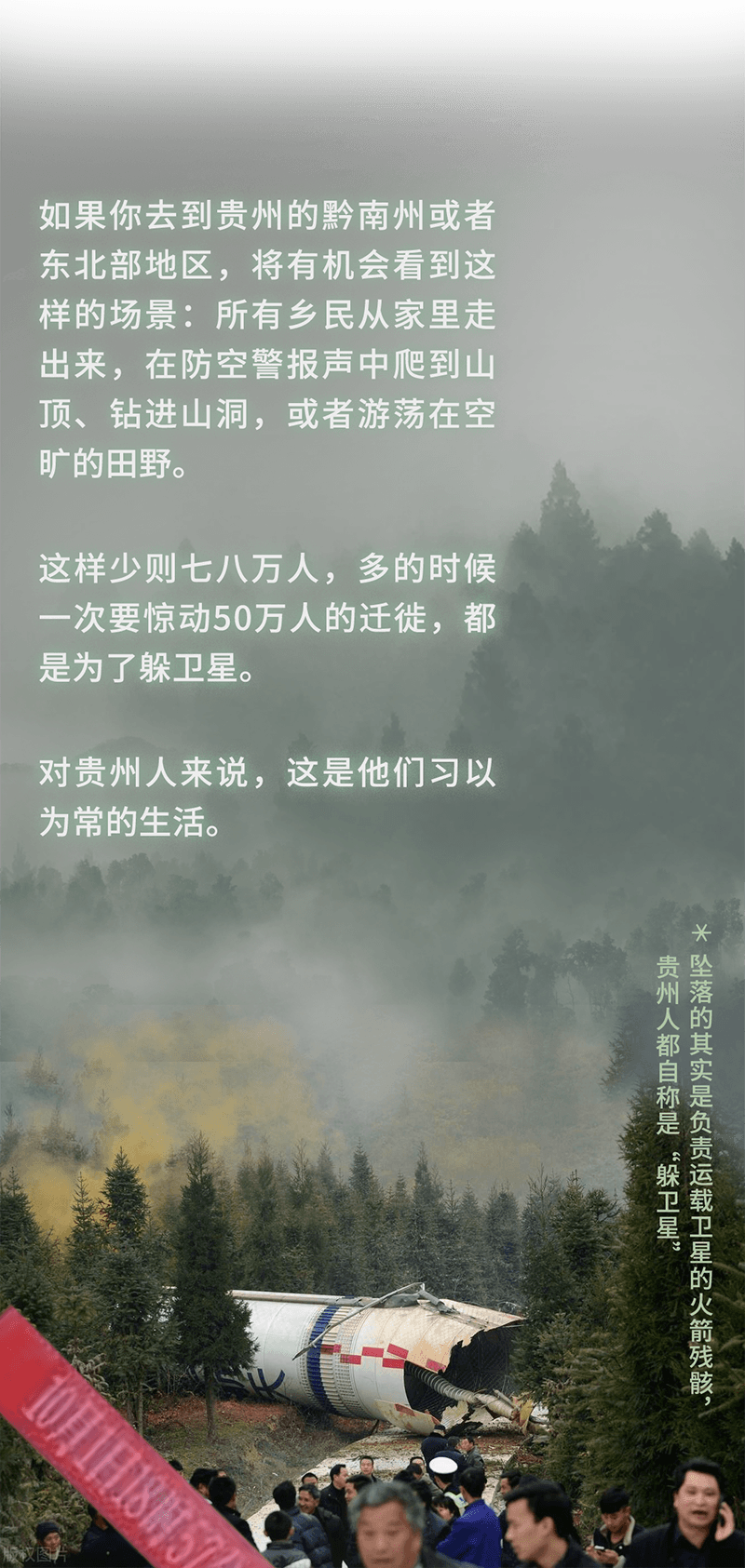远在900多公里之外的贵州,正是运载火箭的途经之地,也就成了承接一路掉落的火箭残骸的最主要葬身地。