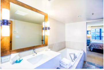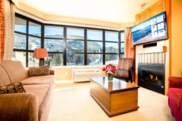 惠斯勒日晷精品酒店(Sundial Boutique Hotel)单卧室套房,推窗即可见彩虹山(Rainbow Mountain)山景,主卧室内有一张可分开的特大号床(King Size),客厅里还有一张大号沙发床,室内设施完善,wifi、燃气壁炉、50寸纯平电视、DVD播放机、空调、厨房、冰箱等应有尽有。这间豪华套房可供4位客人入住,非常适合来惠斯勒旅游的小家庭哟。
