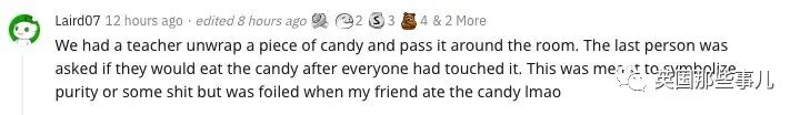 老师本来想拿这教育我们保持贞洁啥的,但我朋友二话不说就吃了下去,计划失败哈哈哈哈。”