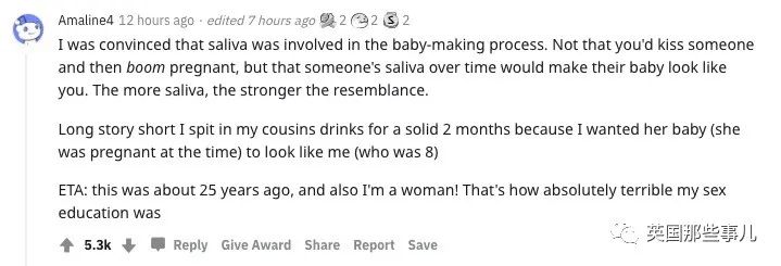 补充:这大概是25年前的事情,而且我也是女的!这足以说明我受到的性教育有多么糟糕。”