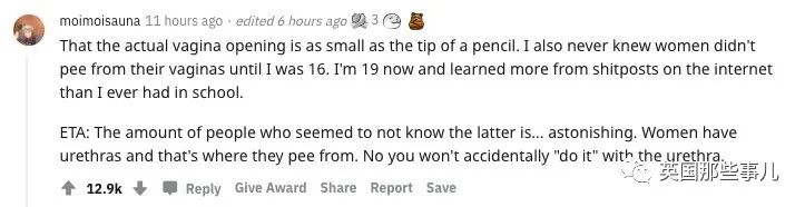 而且在我16岁之前,我一直都以为女性的尿是从阴道里面出来的。我现在已经19岁了,从网络上乱七八糟的帖子里学到的东西比在学校里学到的还要多。