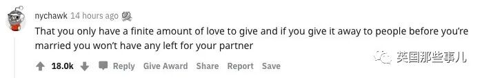“你能给出的爱是有限的,如果你在结婚前就把爱给了别人,那你的伴侣就什么都得不到了。”