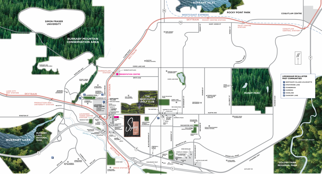 Lougheed town centre 商圈中最新的25层住宅Sydney,座落于高贵林及本那比交汇处——闹中取静的新晋城市West Coquitlam, 前有楼后有山的天人合一绝佳之地,既远离市中心喧嚣却不乏便利的通勤,让您自由穿梭于大温各大城市。