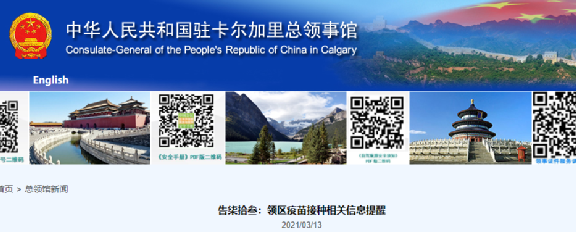 中国驻卡尔加里总领馆:注意疫苗接种相关信息