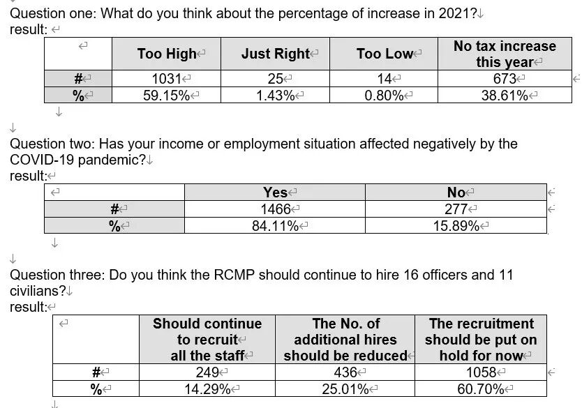 列治文地税猛增5.68%合适吗?民意调查结果来了!原创2021-03-17 |作者: | 来源:北美观察家温哥华分享:#列治文#地税 此前,列治文市议会投票通过一项2021年营运预算案,同意将地税增幅修订为5.68%。 市府表示,多收的税款主要用于增聘16名警员和11名文职人员,预计将增加300万元开支,相当于1.24%的地税增幅部分。其它还包括要增聘12名消防人员,令地税再增加0.75%。 疫情形势还没有明显缓解,经济也没有完全恢复,大幅增加税率是否明智? 近日,列治文社区联盟(RCC)发布了地税加幅高达5.68%的民意调查结果。这项调查于2021年2月24日至3月14日进行,共有1743人在网上完成了问卷调查。 在这项调查中,94.49%的参与者(1647人)是列治文居民,3.9%虽然不是列治文居民,但是这这里工作、学习或拥有房产,只有1.61%的参与者不属于上述两种情况。 以下是民意调查的中期报告,接下来,RCC还将对民调结果进行更详细的分析,并撰写最终报告。完整的调查数据也将在稍后公布。 问题1:您怎么看2021年的地税增幅? 问题2:您的收入或就业状况是否受到疫情的负面影响? 问题3:您认为列治文应该增聘16名警员和11名文职人员吗? 民调结果显示,59%的人认为5.68%的地税增幅过高,39%的人认为2021年不应该上调,只有1.43%的人认为这个增幅可以接受。 关于疫情的负面影响,84%的人说收入减少了,只有16%的人说收入没有受到影响。 至于增聘计划,60.7%的受访者认为应该推迟,25%的人认为应该减少,只有不到15%的人认为应该继续增聘。 RCC发言人谢尔顿·史塔瑞特(Sheldon Starrett)介绍说,超过1700人在2周半的时间里参与了问卷调查。其中有600多人发表了意见或提出一些问题,这些意见可以归纳为8个方面: 不支持地税大幅上调的理由: 1、退休人员和其他固定收入者受到的影响最大; 2、因为疫情,很多人失去了工作或收入; 3、除地税外,水电费、保险费、生活费等其它费用也在增加; 4、增税对企业主的伤害更大; 5、首先该考虑削减成本,包括工资和员工人数; 6、推迟招募更多的皇家骑警; 7、必须证明增聘皇家骑警会改善公共安全; 8、疫情让很多人心力交瘁,不应该给大家更多的压力。 反对大幅增加地税的市议员区泽光说,调查结果和他从其它来源获得的公众意见相符。 他在一份声明中表示,自从市议会决定5.86%的地税增幅后,市长和议员们收到超过100封电子邮件,除一封外,其它都是反对的声音。 他还指出,列治文在2021年的前11个月失去了17550个工作岗位,这意味着数千个家庭受到影响,这个时候是否大幅增税需要倾听民意。 接下来,RCC将完成最终报告,并提交给市议会。 有关调查或市政厅会议的详情,请联络:谢尔顿·史塔瑞特604-992-4288;梁国雄604-808-0782 3月16日晚6:30,RCC将举办ZOOM会议,回答媒体关于此次民调的提问。会议ID:857 2036 1780/密码:20361780 声明:原创作品,未经允许请勿转载复制阅读 未经允许不得转载:加拿大乐活网 »列治文地税猛增5.68%合适吗?民意调查结果来了!分享: