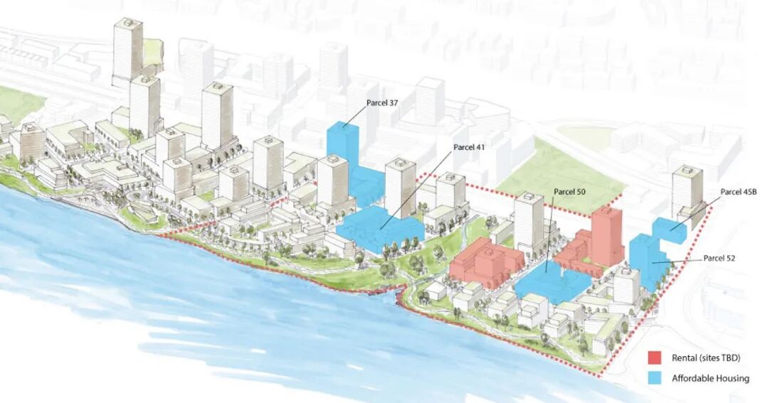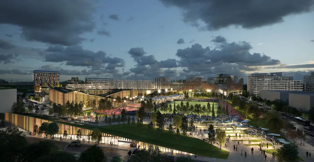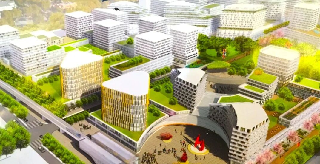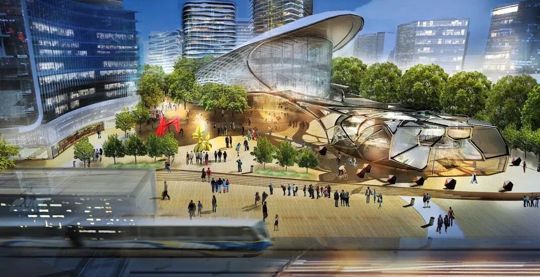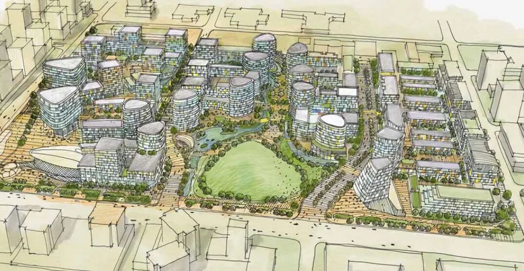 1、列治文奥林匹克中心(RENDERINGS)周边高达290万平方英尺的城市综合体开发计划。