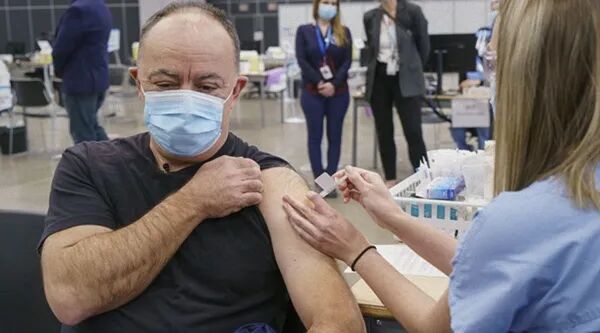 省卫生部长Christian Dubé在Palais des congrès接种了新冠疫苗。他生于1956年,符合优先接种规则。