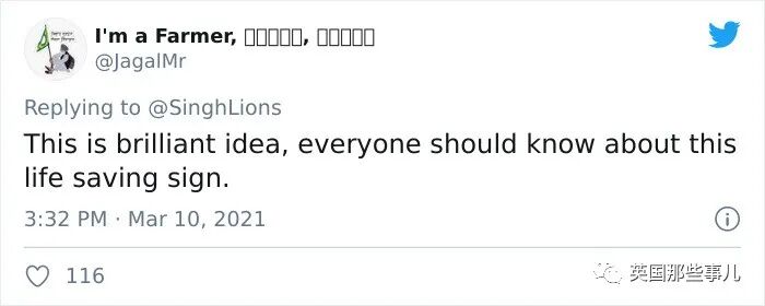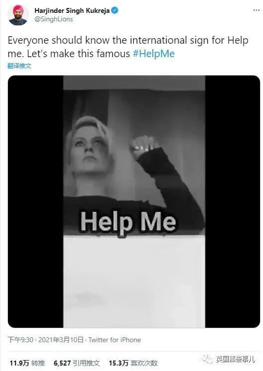 推特用户@Harjinder Singh Kukreja还为这个手势做了个一分钟的小视频,教大家如何在身处危险情况下,活学活用这个“救命手势暗号”,得到网友们的热情转发。