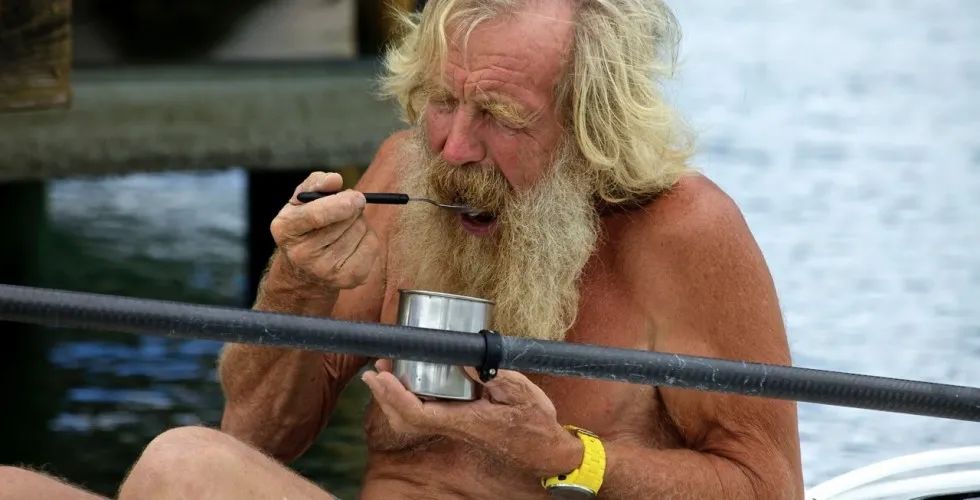 没有风帆,全靠双手划艇,烈日焚空,他唯有黑夜前行。